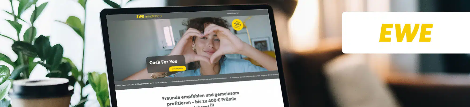 Die EWE AG ist ein Versorgungsunternehmen im Bereich Strom, Erdgas, Telekommunikation und Informationstechnologie. Als das fünftgrößte Energieversorgungsunternehmen in Deutschland möchte EWE seinen Kundenstamm ausbauen und wählt dafür den werthaltigen Ansatz des Empfehlungsmarketings. Mit einem innovativen Empfehlungsprogramm können Unternehmen eine deutliche Absatzsteigerung erreichen. Zudem ist diese Form des Marketings sehr kosteneffizient. Über Empfehlungen gewonnene Kunden haben erfahrungsgemäß eine höhere Bonität, eine geringere Schlechtzahler-Quote und eine geringere Churn-Quote. EWE möchte diese Vorteile nutzen und hat sich für die Aufnahme aller Produkte aus den Bereichen Energie und Telekommunikation in ein Empfehlungsprogramm entschieden.